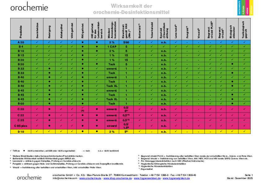 Desinfektionsmittel wirken nur dann zuverlässig, wenn die vorgeschriebene Anwendungskonzentration eingehalten wird. Nutzen Sie daher unsere Dosiertabellen zur richtigen Dosierung.